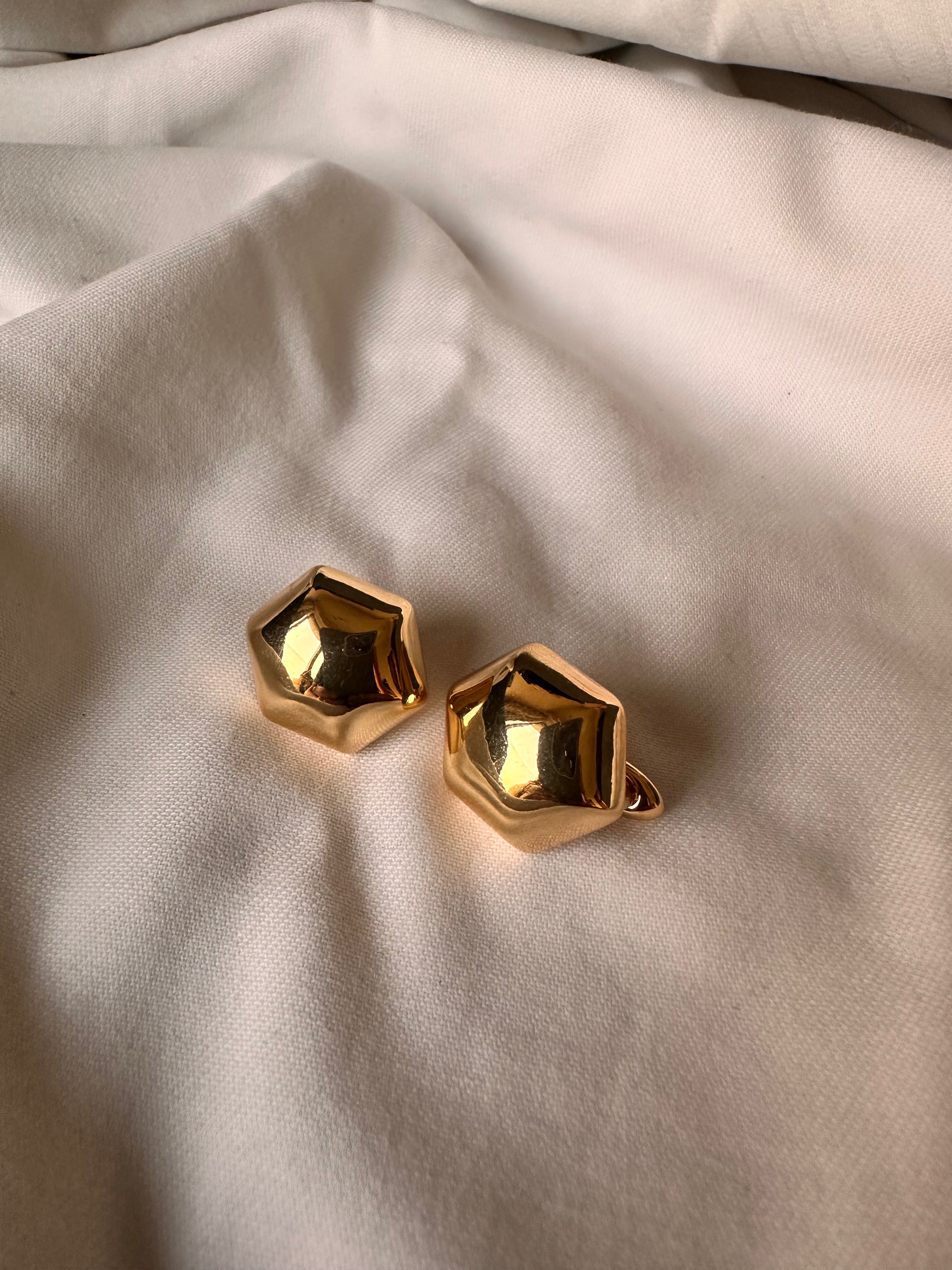 Elevate your jewelry collection with these stunning Potlu earrings, featuring an elegant hexagon design in radiant gold. Perfect for those who appreciate the fusion of traditional craftsmanship and modern aesthetics, these earrings add instant sophistication to any look.