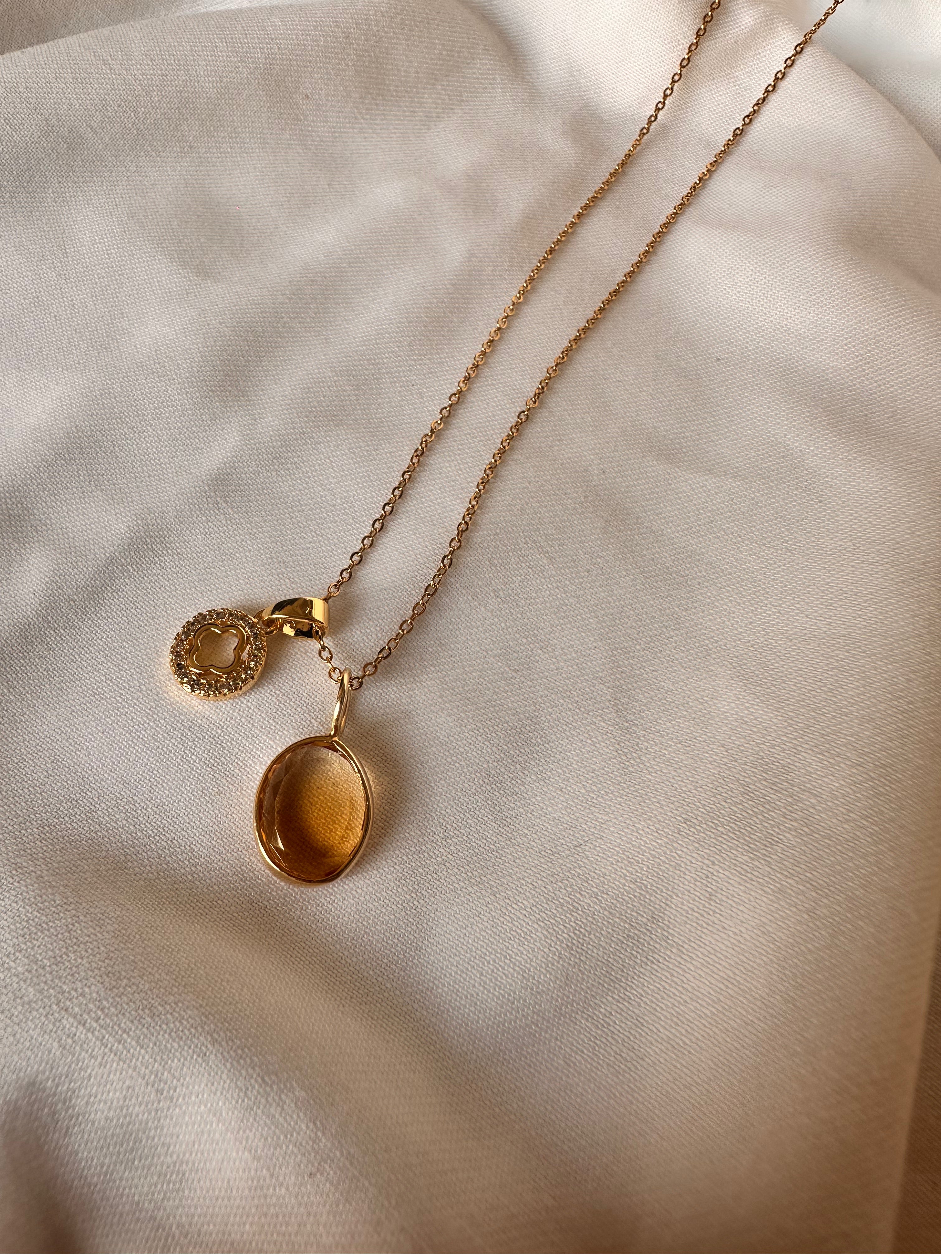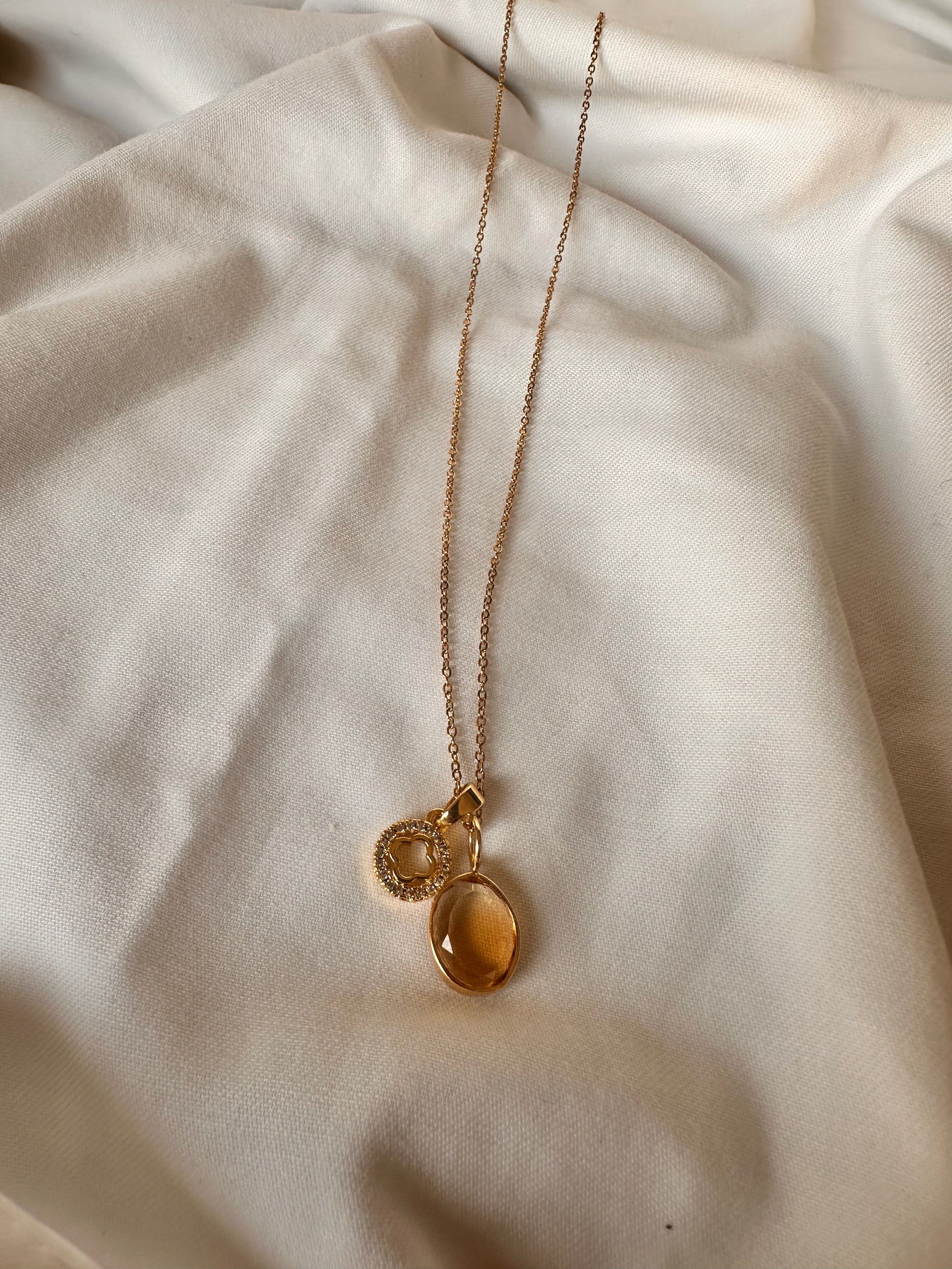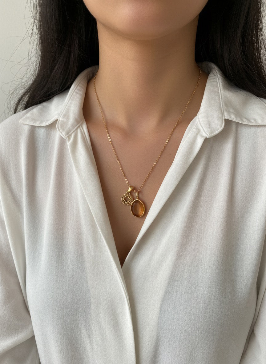 Elevate your jewelry collection with the Soram pendant, a stunning piece featuring a luminous citrine stone set in gold-toned metal. Citrine's warm, golden radiance brings an instant glow to your complexion and effortlessly transitions from day to evening wear.