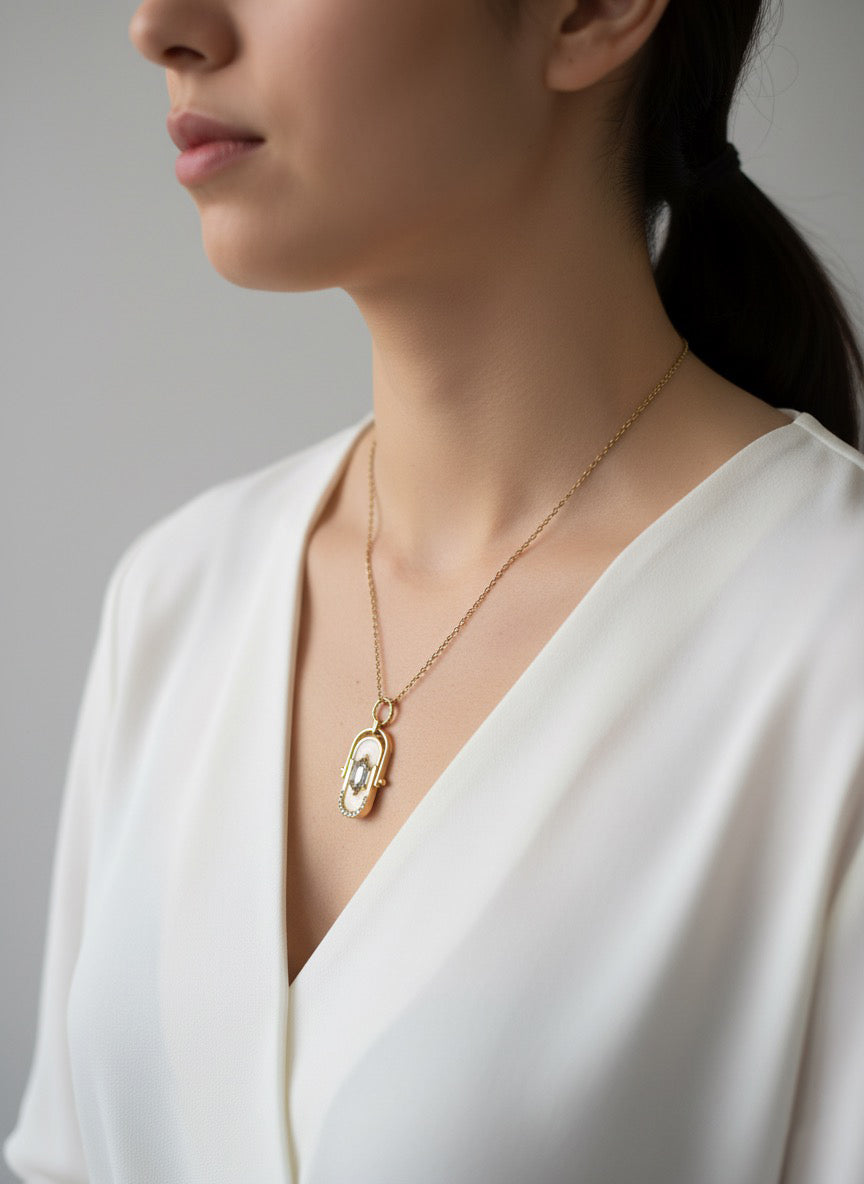 This Sugg pendant is expertly crafted from brass. Add a touch of elegance to your jewelry collection with this exquisite piece.