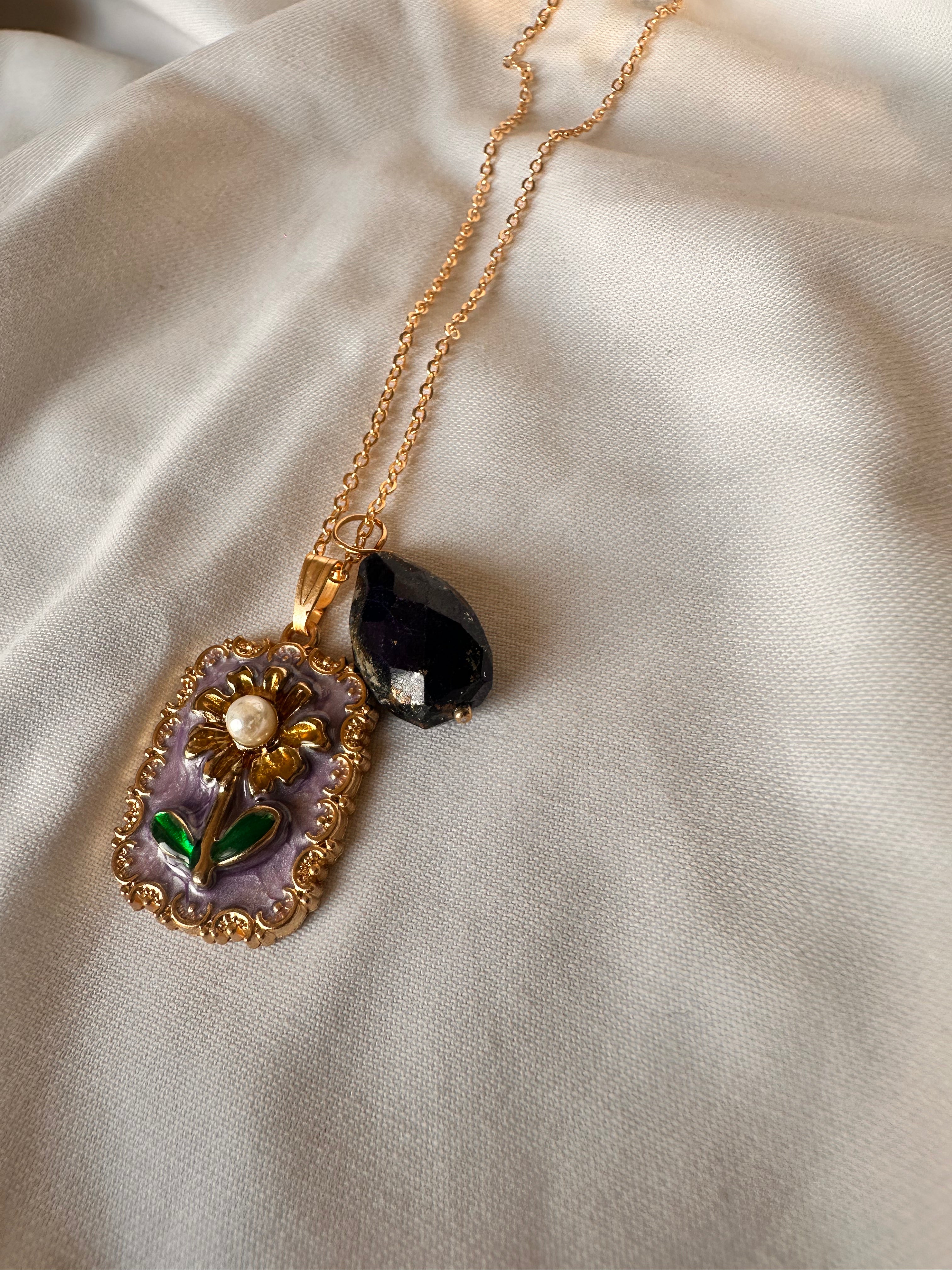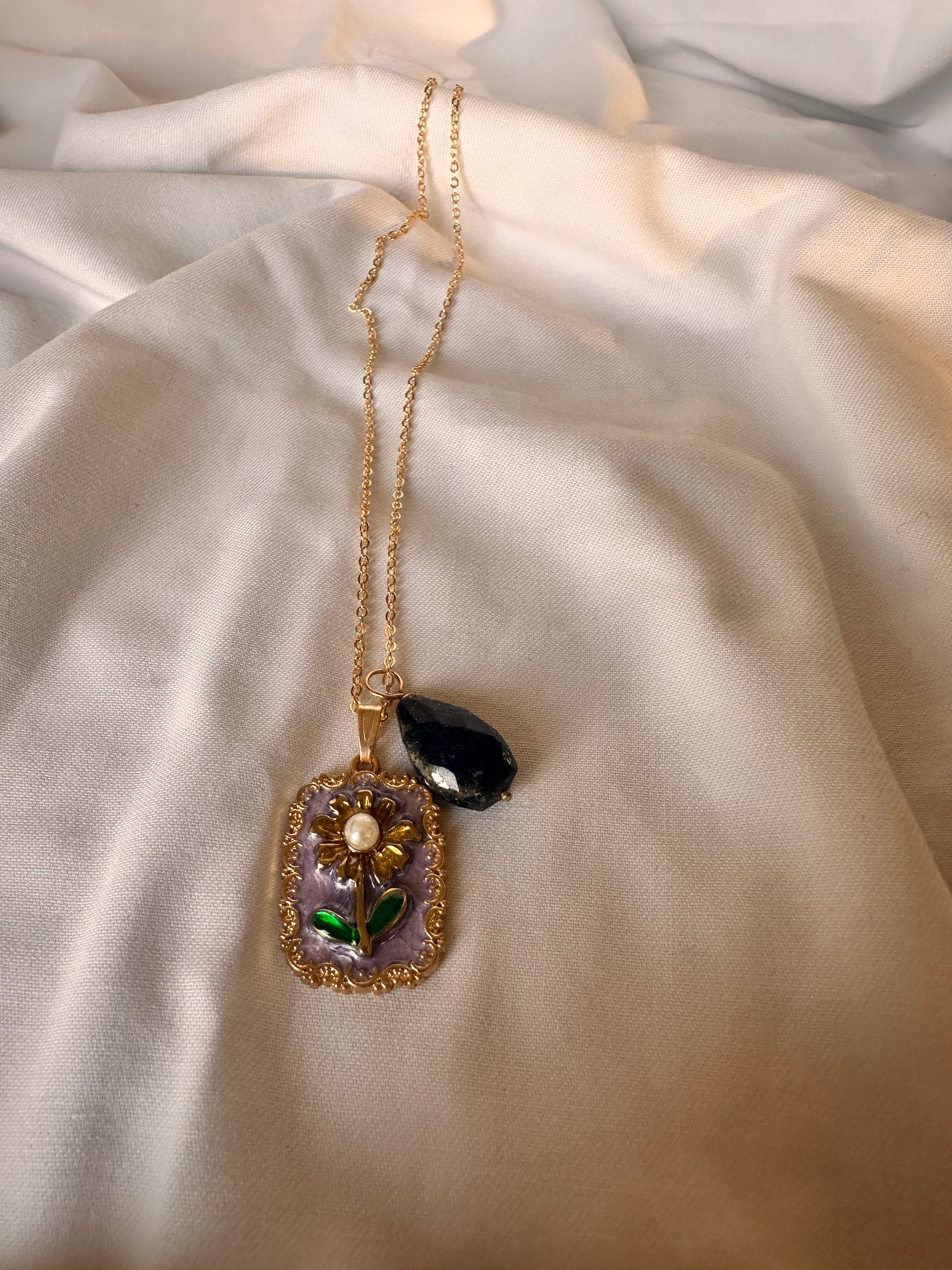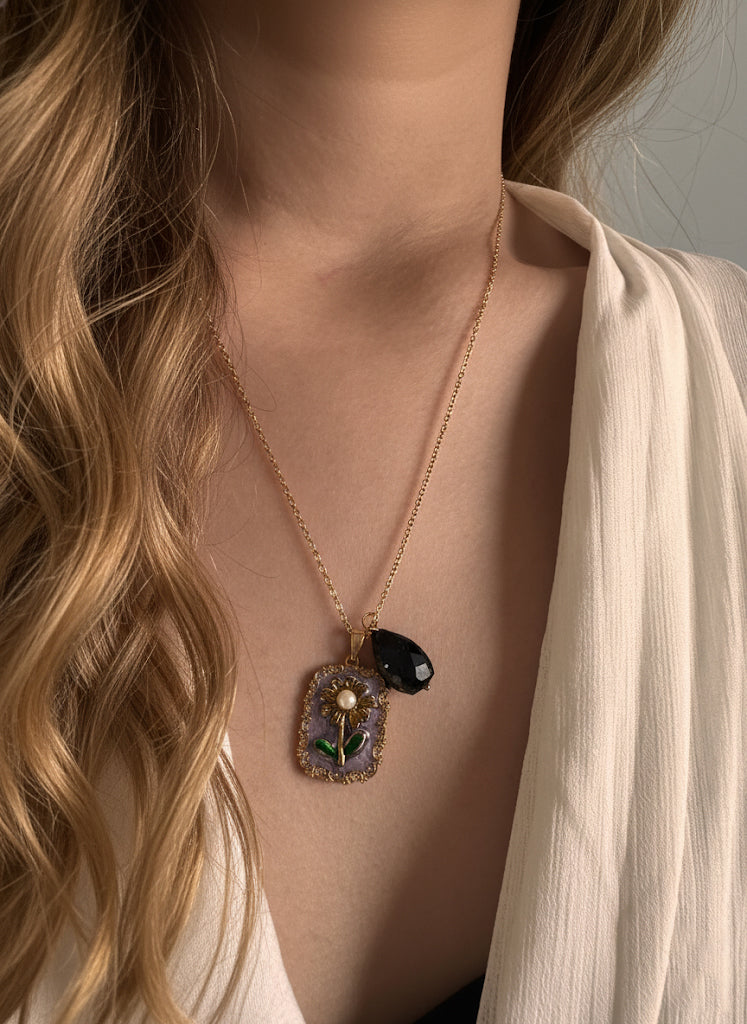 Make a statement with the Yumi pendant, where authentic gemstone beauty meets exceptional artisanal skill. This exquisite piece features genuine lapis stone, prized for its mesmerizing deep blue coloration and natural character that ensures every pendant is beautifully unique. The gold color enamel painting adds a layer of sophisticated elegance, with warm metallic accents that perfectly complement the lapis's rich tones.